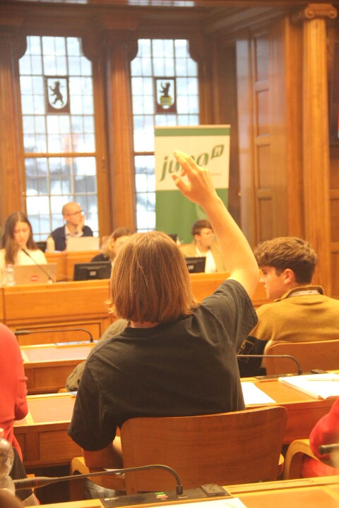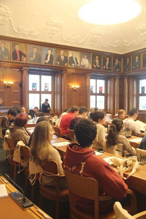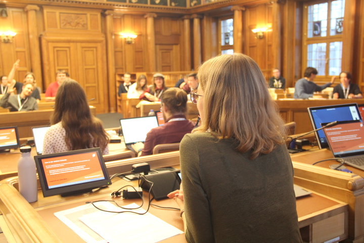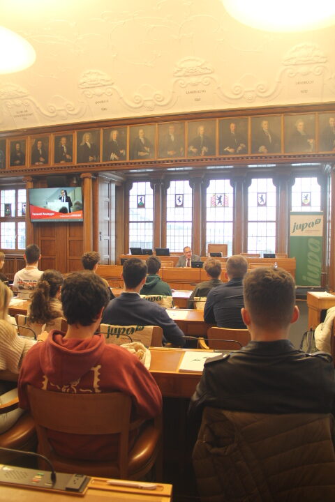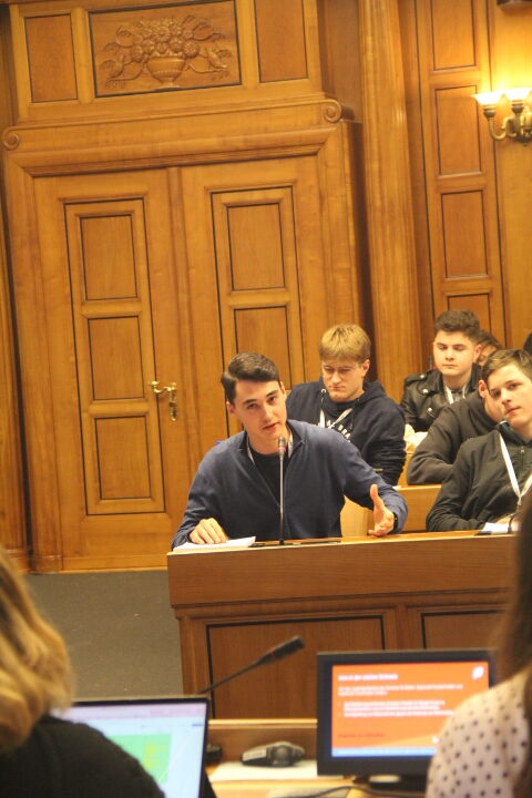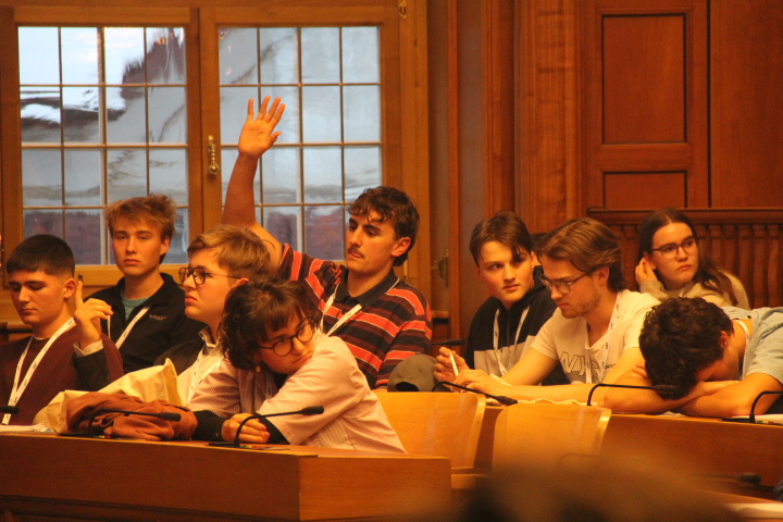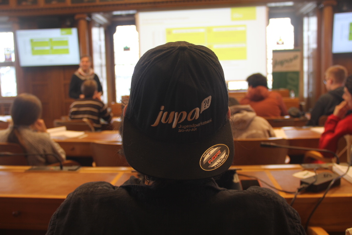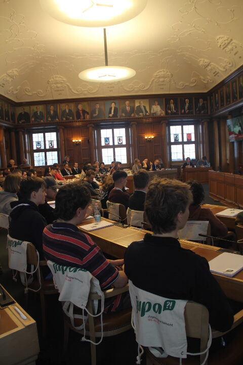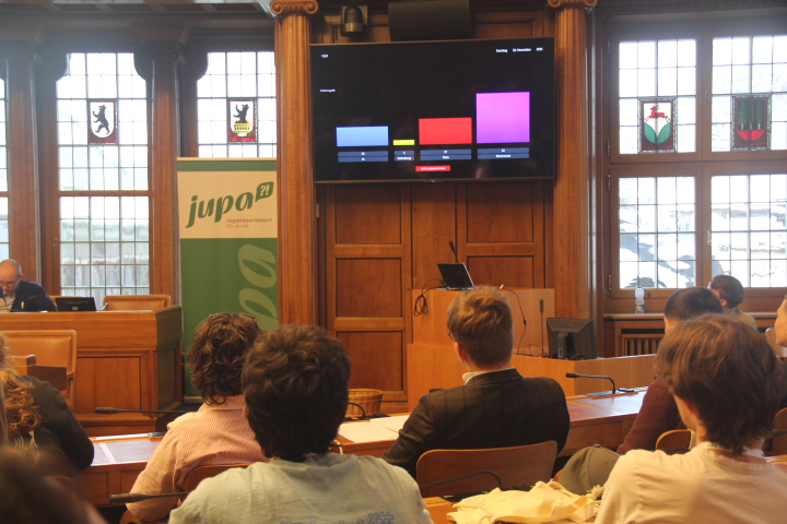 Nach dem Streitgespräch hatten die Jugendlichen im Plenum die Gelegenheit, zu den, in den Workshops erarbeiteten Forderungen Änderungsanträge zu Stellen und zu diskutieren um dabei, nach Abstimmungen, konkrete Vorschläge für die kantonale Politik zu formulieren.