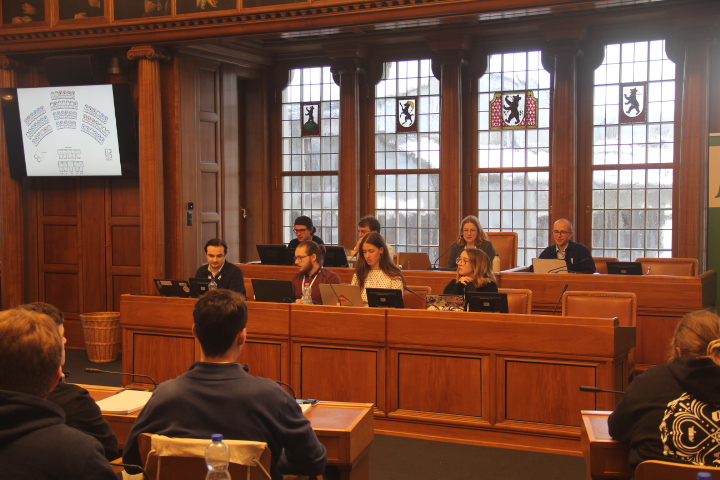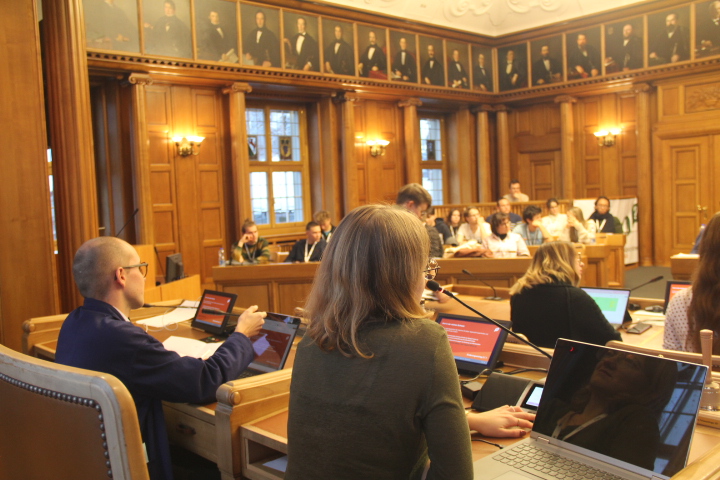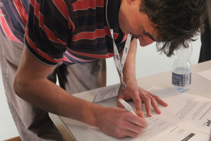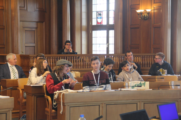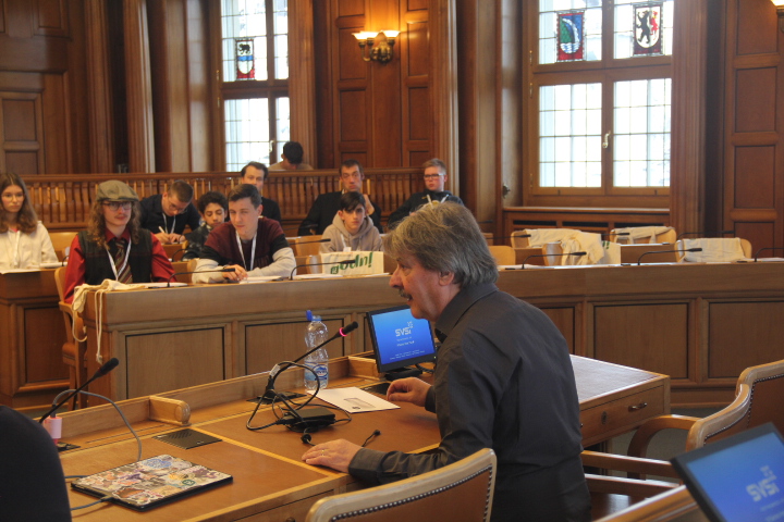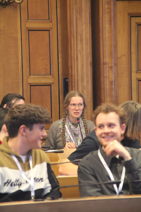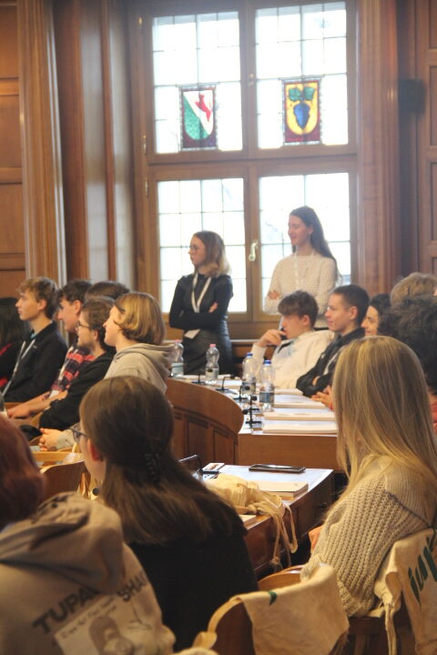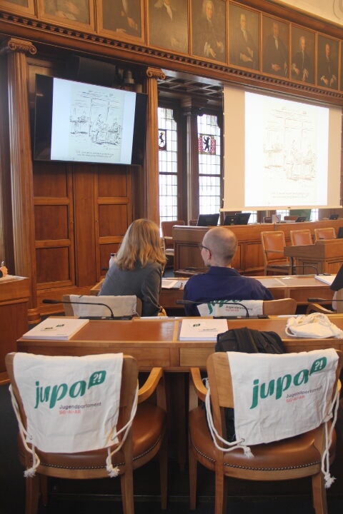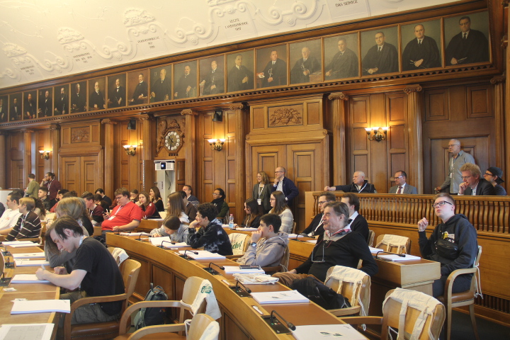Nach dem Streitgespräch hatten die Jugendlichen im Plenum die Gelegenheit, zu den, in den Workshops erarbeiteten Forderungen Änderungsanträge zu Stellen und zu diskutieren um dabei, nach Abstimmungen, konkrete Vorschläge für die kantonale Politik zu formulieren.
