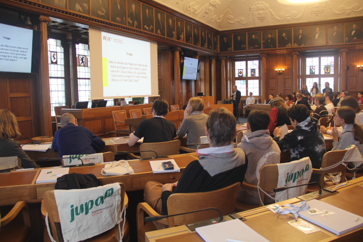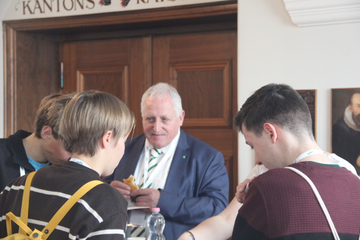 Eröffnet wurde der Tag von Landammann Hansueli Reutegger, Vorsteher des Departements Finanzen Appenzell Ausserrhoden, der die Jugendlichen mit dem Impuls begrüßte, dass in unseren Kantonen nicht das Geld regiert, sondern der Wert eines Arguments. Den theoretischen Rahmen setzte anschließend Prof. Dr. Mathias Binswanger, Ökonom und Glücksforscher, mit seinem Vortrag. Er erläuterte anschaulich den Zusammenhang zwischen Einkommen und persönlichem Glück: Während ein gewisser materieller Wohlstand grundlegend für ein gutes Leben sei, führe ein höheres Einkommen in wohlhabenden Gesellschaften wie der Schweiz nur bedingt zu mehr Zufriedenheit.